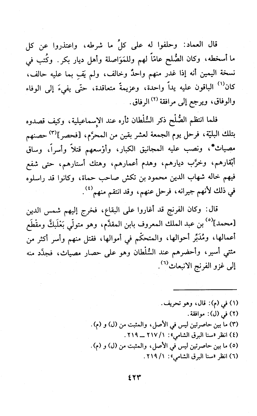 قَالَ وَكَانَ الفرنج قد أَغَارُوا على الْبِقَاع فَخرج إِلَيْهِم شمس الدّين مُحَمَّد بن عبد الْملك الْمَعْرُوف بِابْن الْمُقدم وَهُوَ مُتَوَلِّي بعلبك ومقطع أَعمالهَا ومدبّر أحوالها والمتحكم فِي أموالها فَقتل مِنْهُم وَأسر أَكثر من مئتي أَسِير وأحضرهم عِنْد السُّلْطَان وَهُوَ على حِصَار مصياث فجدّد مِنْهُ إِلَى غَزْو الفرنج الانبعاث
