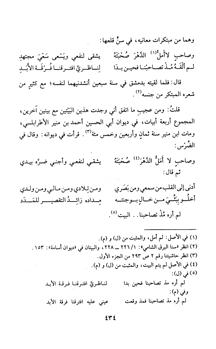 قلت وَمن عَجِيب مَا اتّفق أَنِّي وجدت هذَيْن الْبَيْتَيْنِ مَعَ بَيْتَيْنِ آخَرين الْمَجْمُوع أَرْبَعَة أَبْيَات فِي ديوَان أبي الْحُسَيْن أَحْمد بن مُنِير الأطرابلسي وَمَات ابْن مُنِير سنة ثَمَان وَأَرْبَعين وَخمْس مئة قَرَأت فِي ديوانه وَقَالَ فِي الضرس