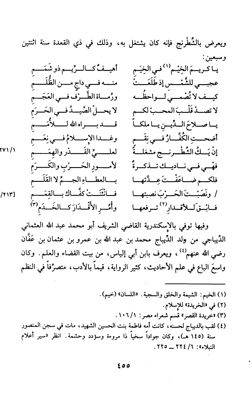 (إِن يَك الشطرنج مشغلة ... لعليّ الْقدر والهمم)