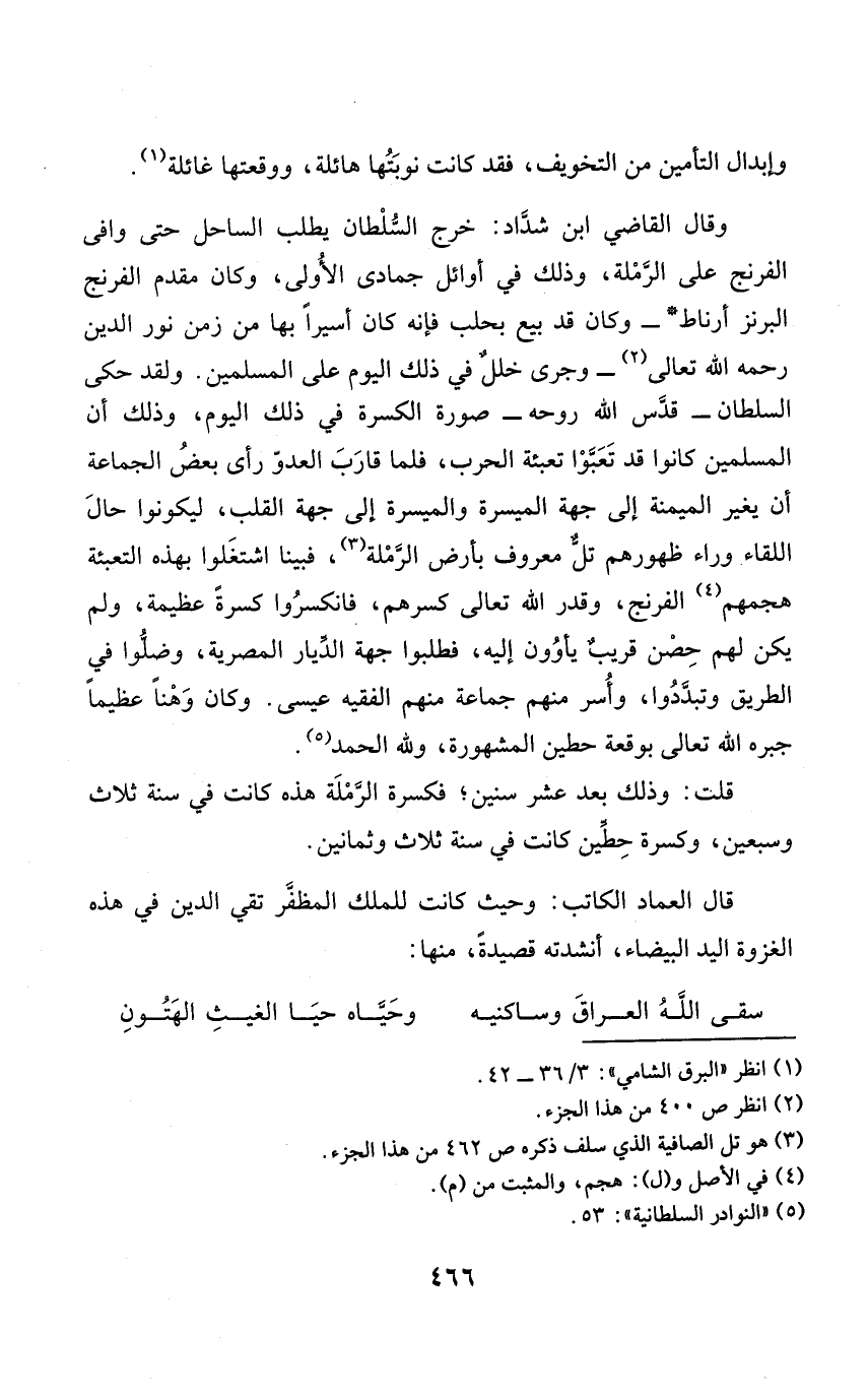 قلت وَذَلِكَ بعد عشر سِنِين فكسرة الرّملة هَذِه كَانَت فِي سنة ثَلَاث وَسبعين وكسرة حطين كَانَت فِي سنة ثَلَاث وَثَمَانِينَ