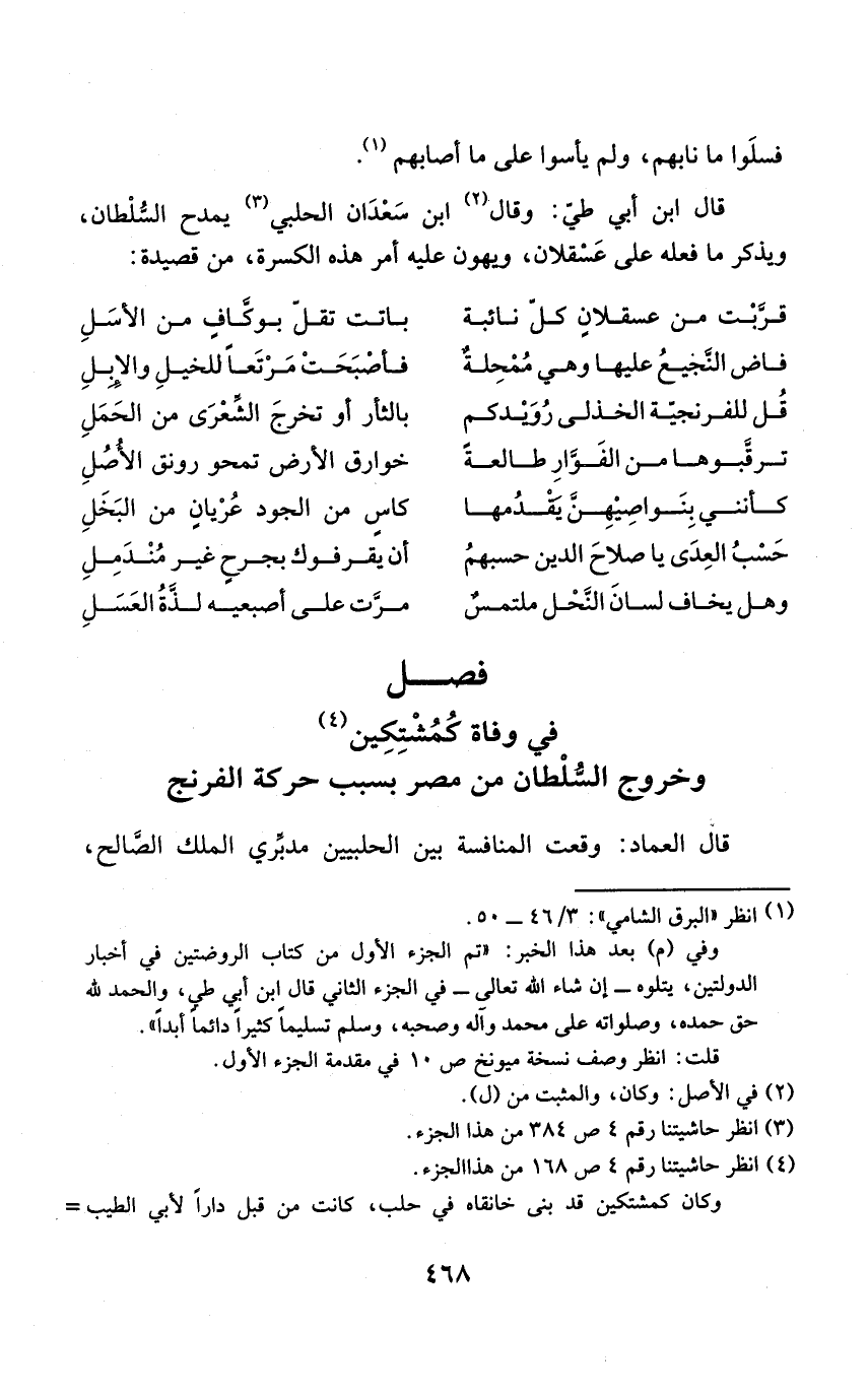 قَالَ ابْن أبي طيّ وَقَالَ ابْن سَعْدَان الحلبيّ يمدح السُّلْطَان وَيذكر مَا فعله على عسقلان ويهوّن عَلَيْهِ أَمر هَذِه الكسرة من قصيدة