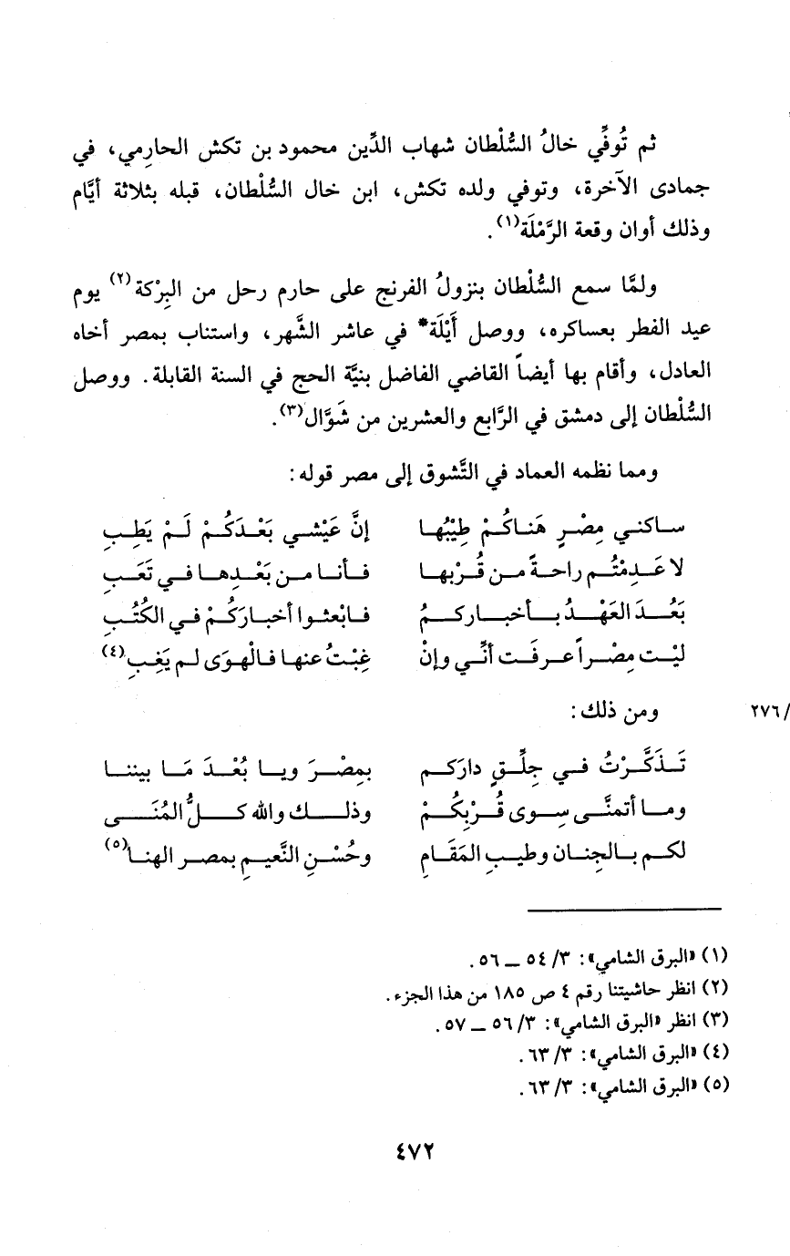 ثمَّ تُوفى خَال السُّلطان شهَاب الدّين مَحْمُود بن تكش الحارمي فِي جُمَادَى الْآخِرَة وَتُوفِّي وَلَده تكش ابْن خَال السُّلطان قبله بِثَلَاثَة أيَّام وَذَلِكَ أَوَان وقْعَة الرملة