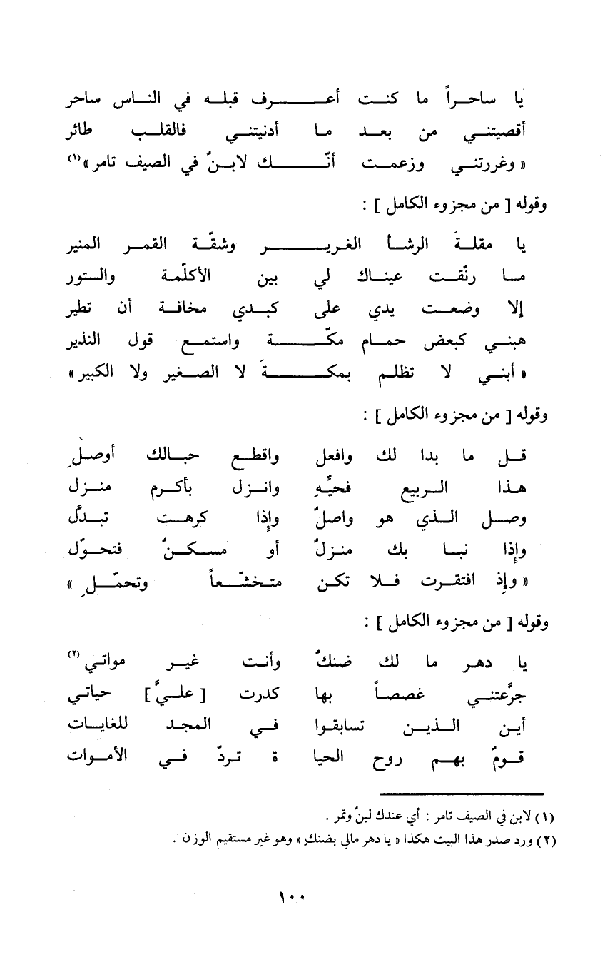 (وغررتني وَزَعَمت انك لِابْنِ فِي الصَّيف تامر ... ) // مجزوء الْكَامِل //