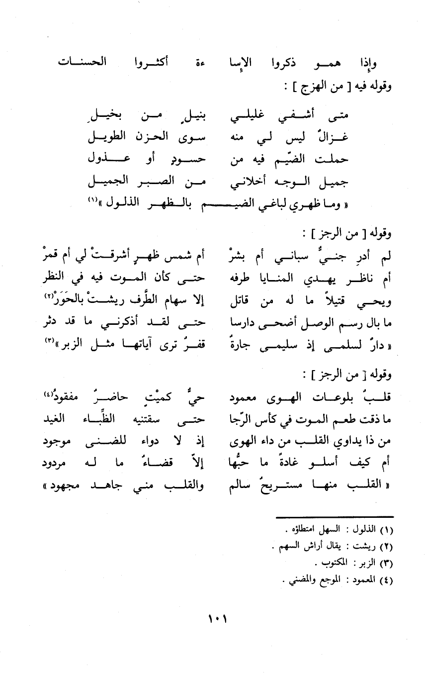 (الْقلب مِنْهَا مستريح سَالم ... وَالْقلب مني جَاهد مجهود) // الرجز //