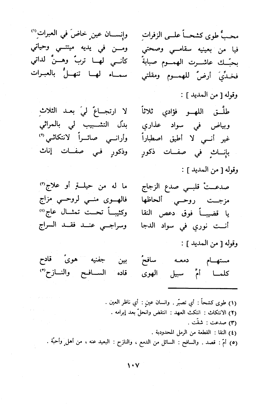 (محب طوى كشحا عل الزفرات ... وإنسان عين خَاضَ فِي العبرات)