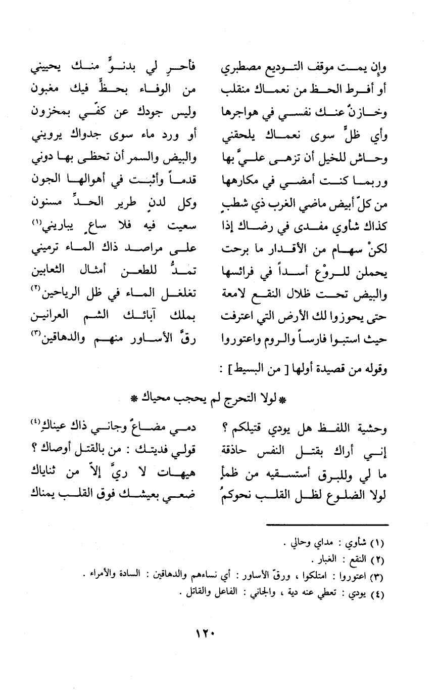 (وحشية اللَّفْظ هَل يودي قتيلكم ... دمي مضاع وجاني ذَاك عَيْنَاك)