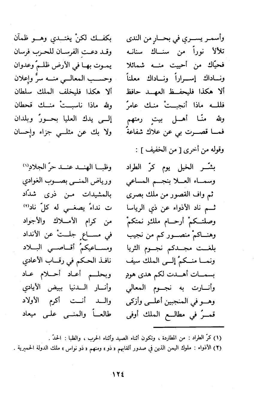 (الا هَكَذَا فَلْيحْفَظ الْعَهْد حَافظ ... الا هَكَذَا فليخلف الْملك سُلْطَان)