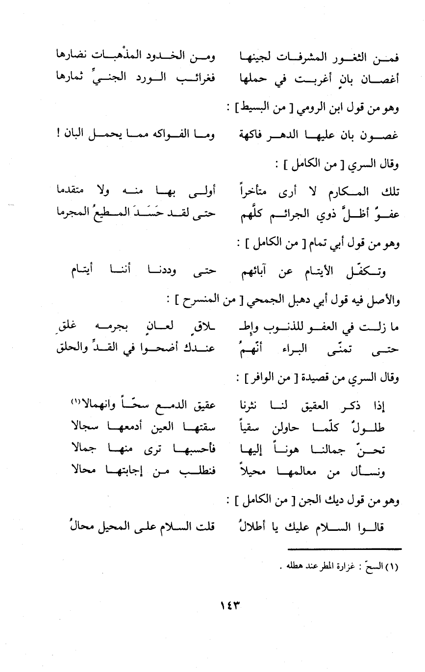 (قَالُوا السَّلَام عَلَيْك يَا أطلال ... قلت السَّلَام على الْمُحِيل محَال) // الْكَامِل //
