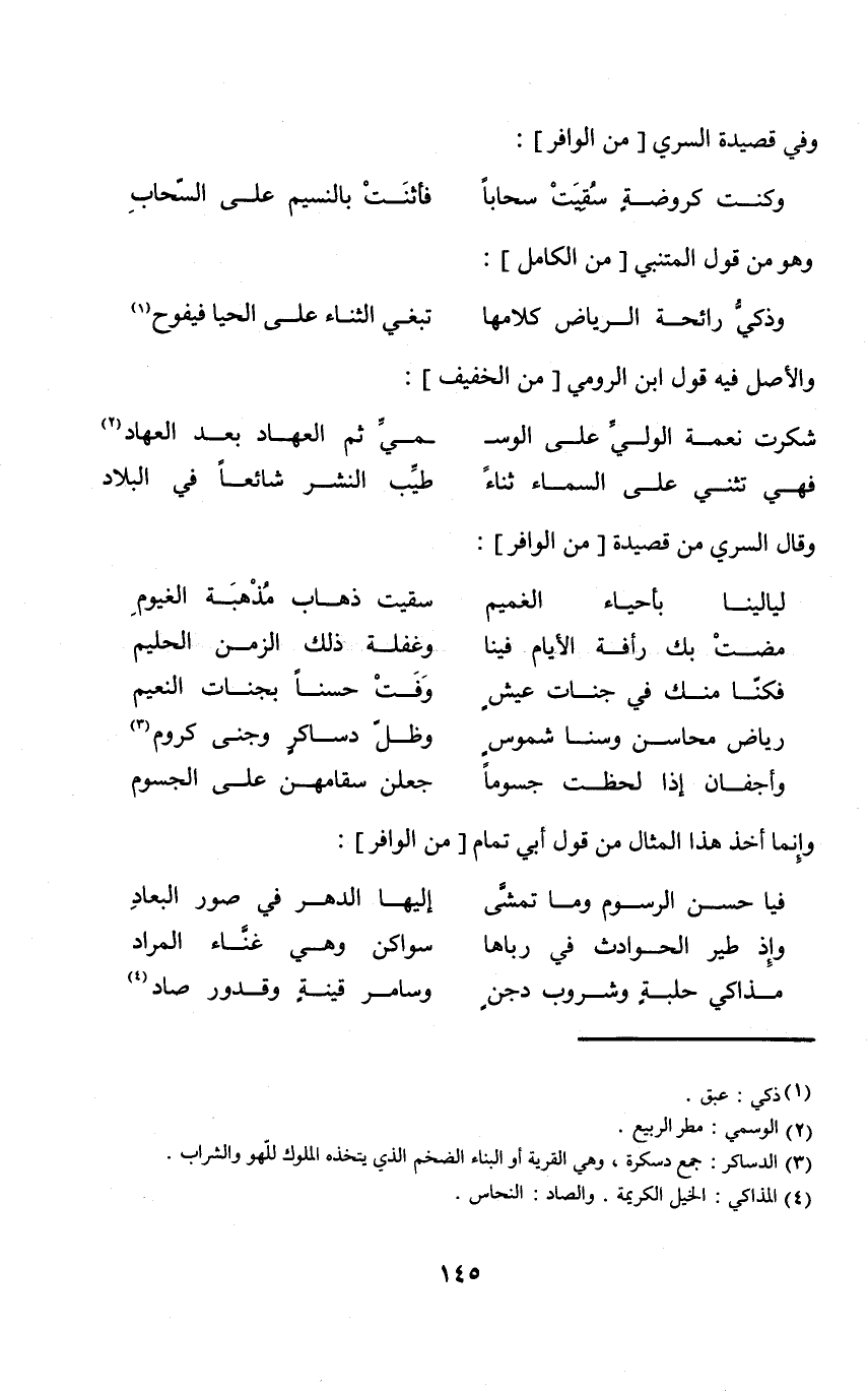 وَفِي قصيدة السّري من الوافر