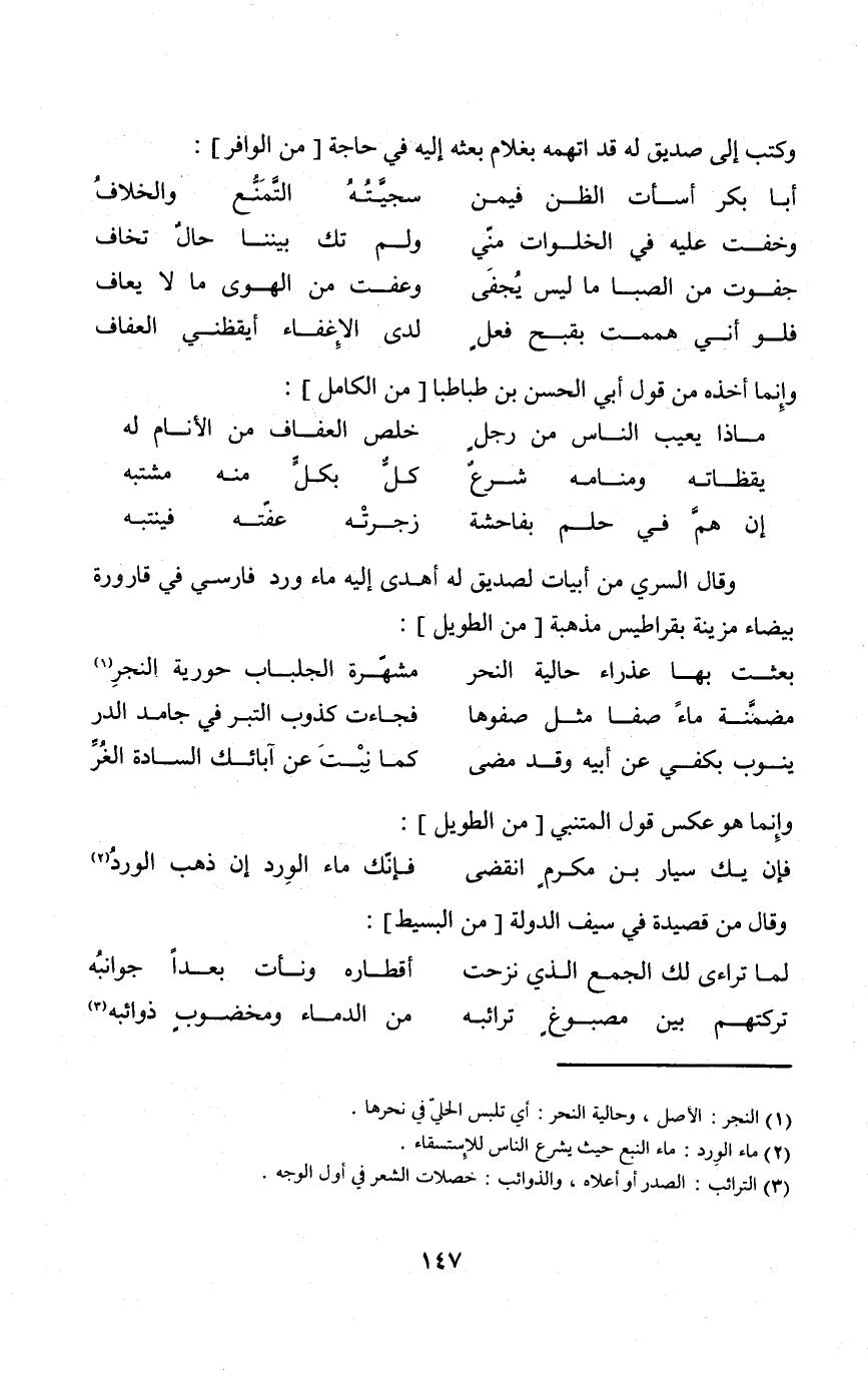 وَقَالَ السّري من أَبْيَات لصديق لَهُ أهْدى إِلَيْهِ مَاء ورد فَارسي فِي قَارُورَة بَيْضَاء مزينة بقراطيس مذهبَة من الطَّوِيل