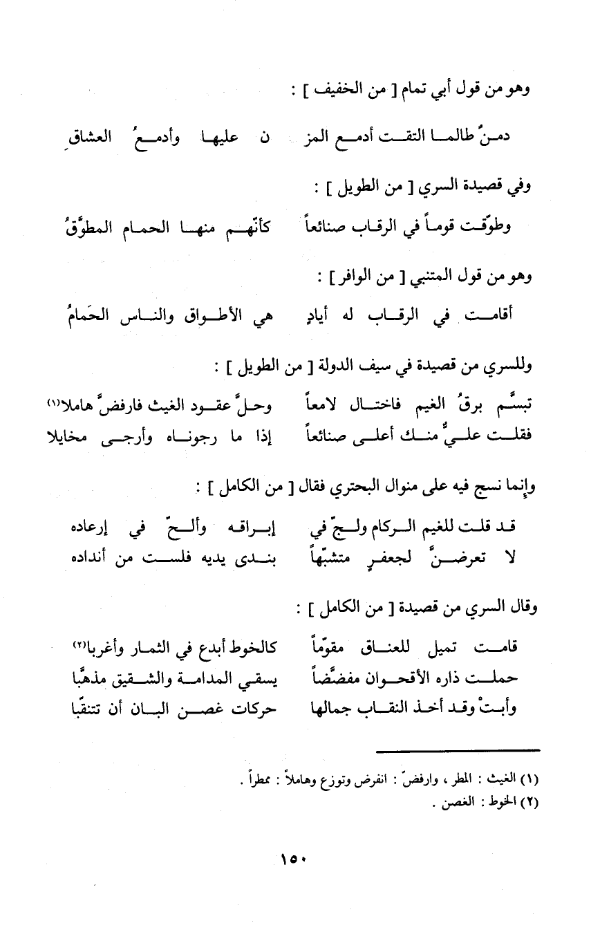 وَإِنَّمَا نسج فِيهِ على منوال البحتري فَقَالَ من الْكَامِل