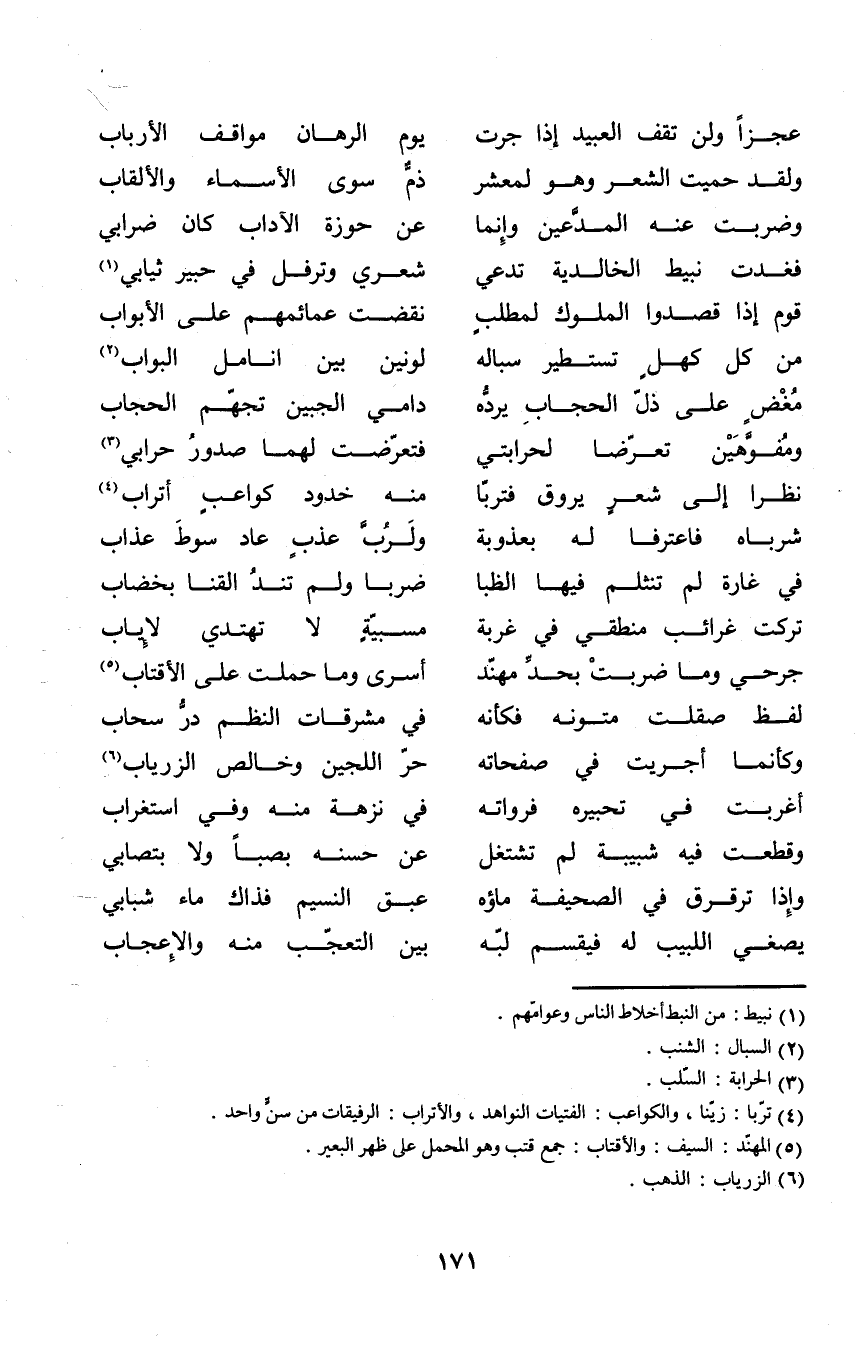 (فغدت نبيط الخالدية تَدعِي ... شعري وترفل فِي حبير ثِيَابِي)