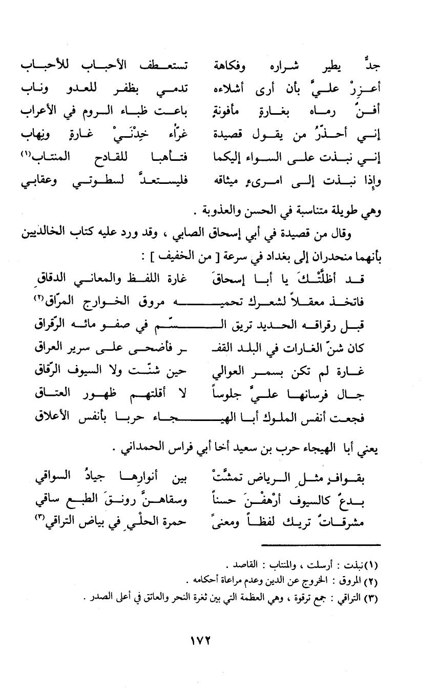 وَقَالَ من قصيدة فِي ابي إِسْحَاق الصابي وَقد ورد عَلَيْهِ كتاب الخالديين بِأَنَّهُمَا منحدران إِلَى بَغْدَاد فِي سرعَة من الْخَفِيف