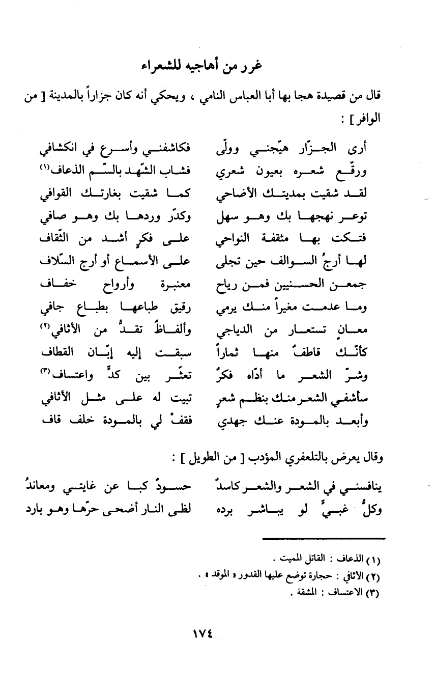 (معَان تستعار من الدياجي ... والفاظ تقد من الاثافي)