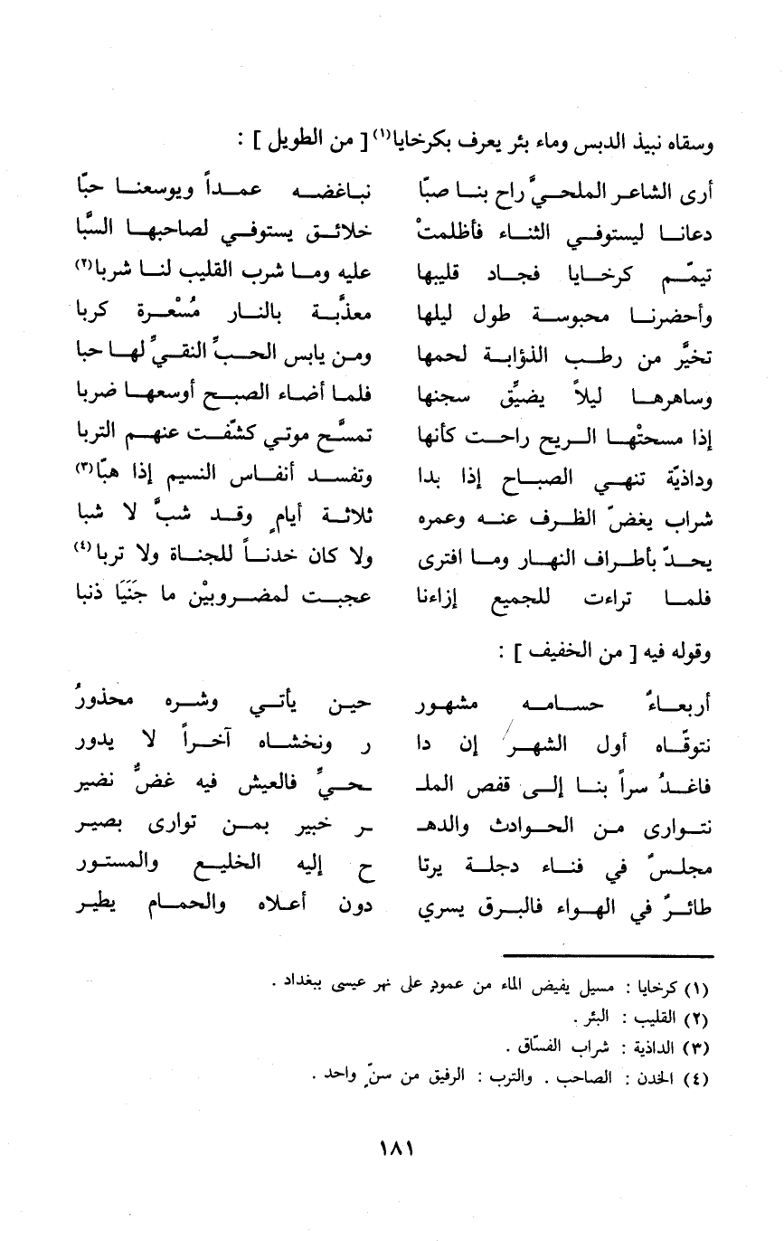 (تيَمّم كرخايا فجاد قليبها ... عَلَيْهِ وَمَا شرب القليب لنا شربا)