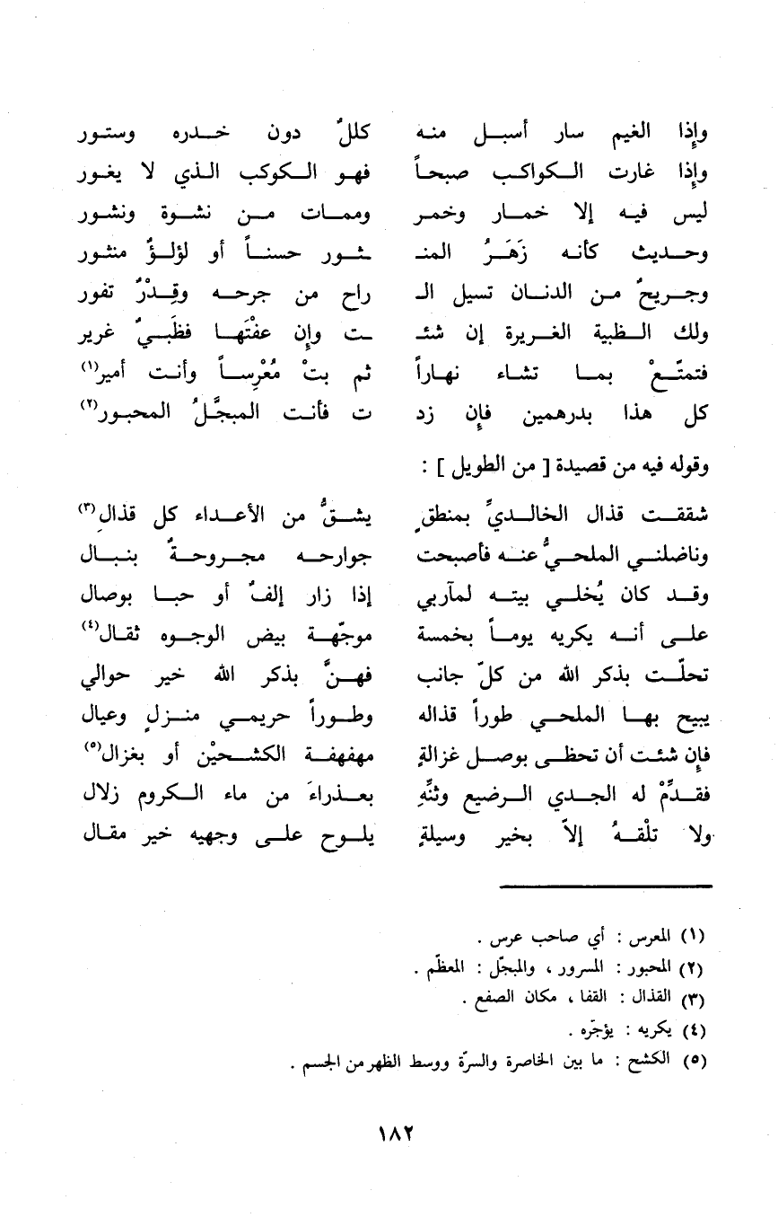 (شققت قذال الخالدي بمنطق ... يشق من الاعداء كل قذال)