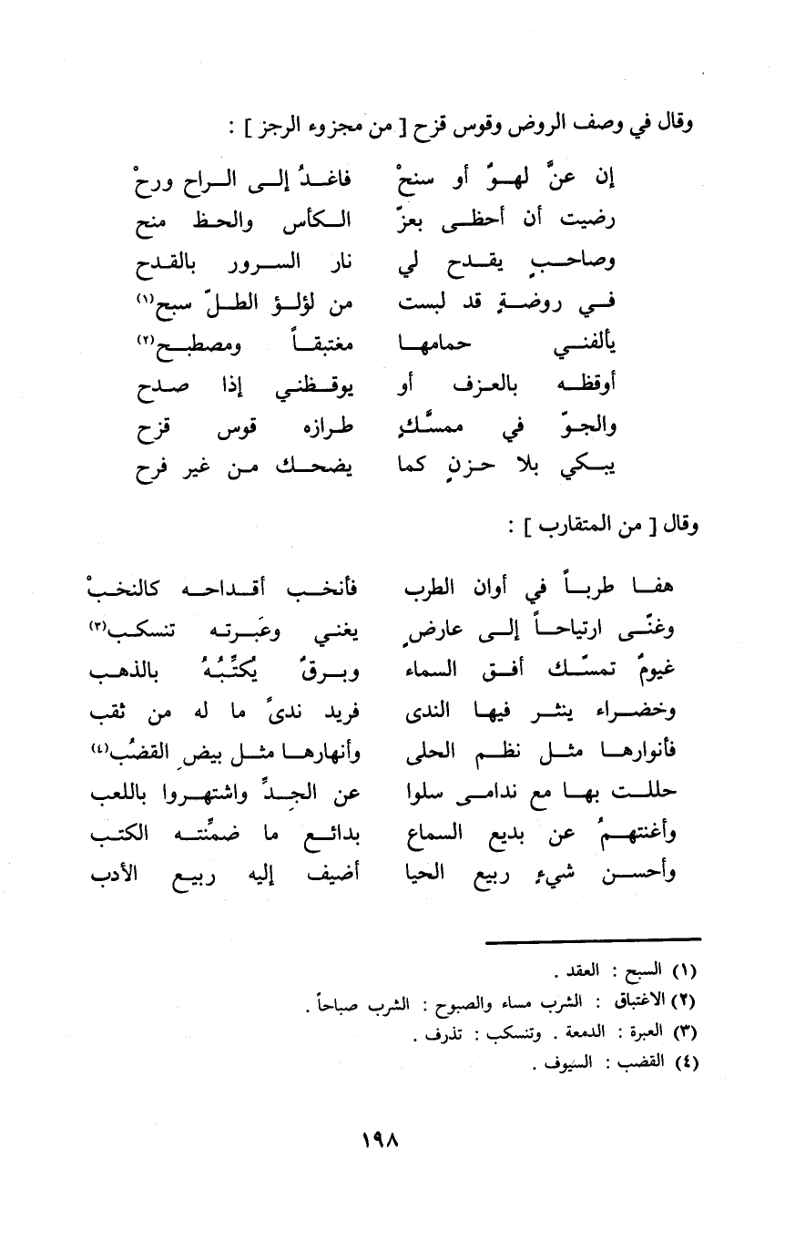 (وَأحسن شَيْء ربيع الحيا ... أضيف اليه ربيع الادب) // المتقارب //