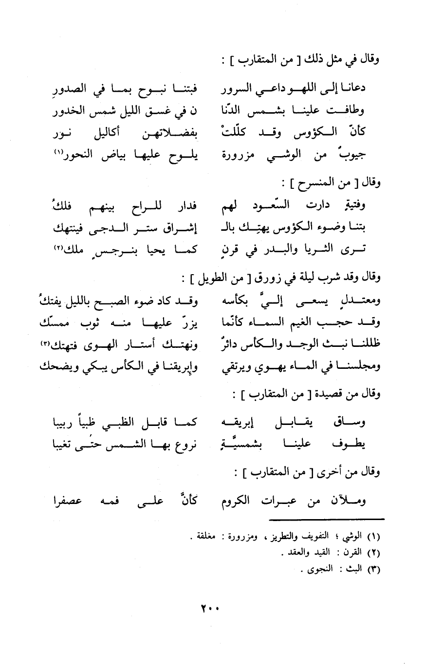 (دَعَانَا الى اللَّهْو دَاعِي السرُور ... فبتنا نبوح بِمَا فِي الصُّدُور)