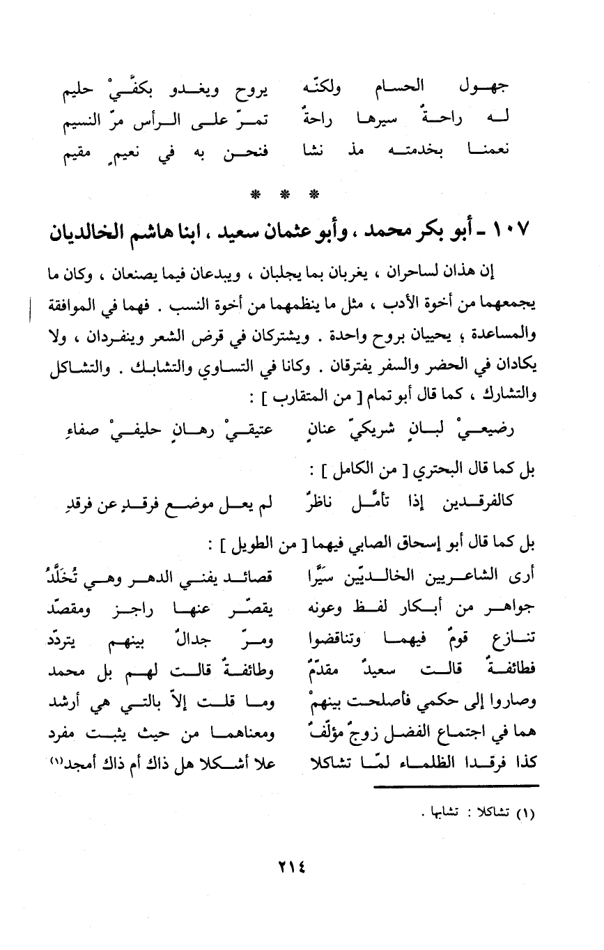 (أرى الشاعريين الخالديين سيرا ... قصائد يفني الدَّهْر وَهِي تخلد)
