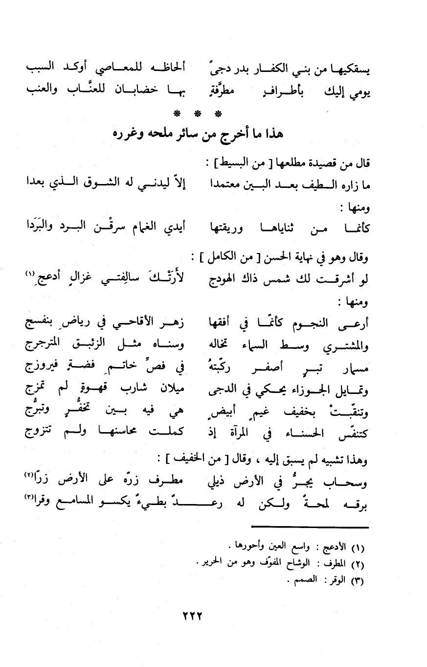 (لَو اشرقت لَك شمس ذَاك الهودج ... لارتك سالفتي غزال ادعج) // الْكَامِل //