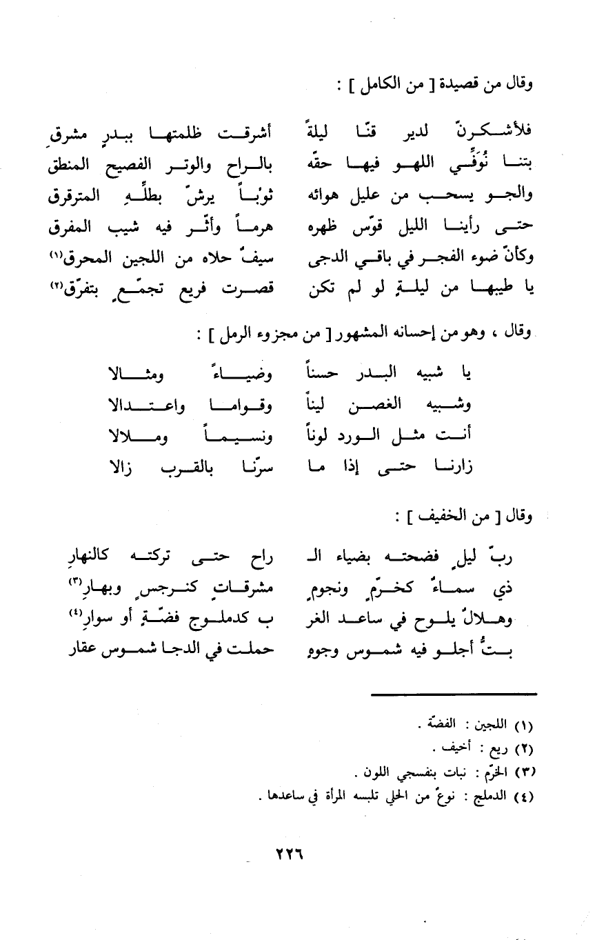 وَقَالَ وَهُوَ من إحسانه الْمَشْهُور من مجزوء الرمل