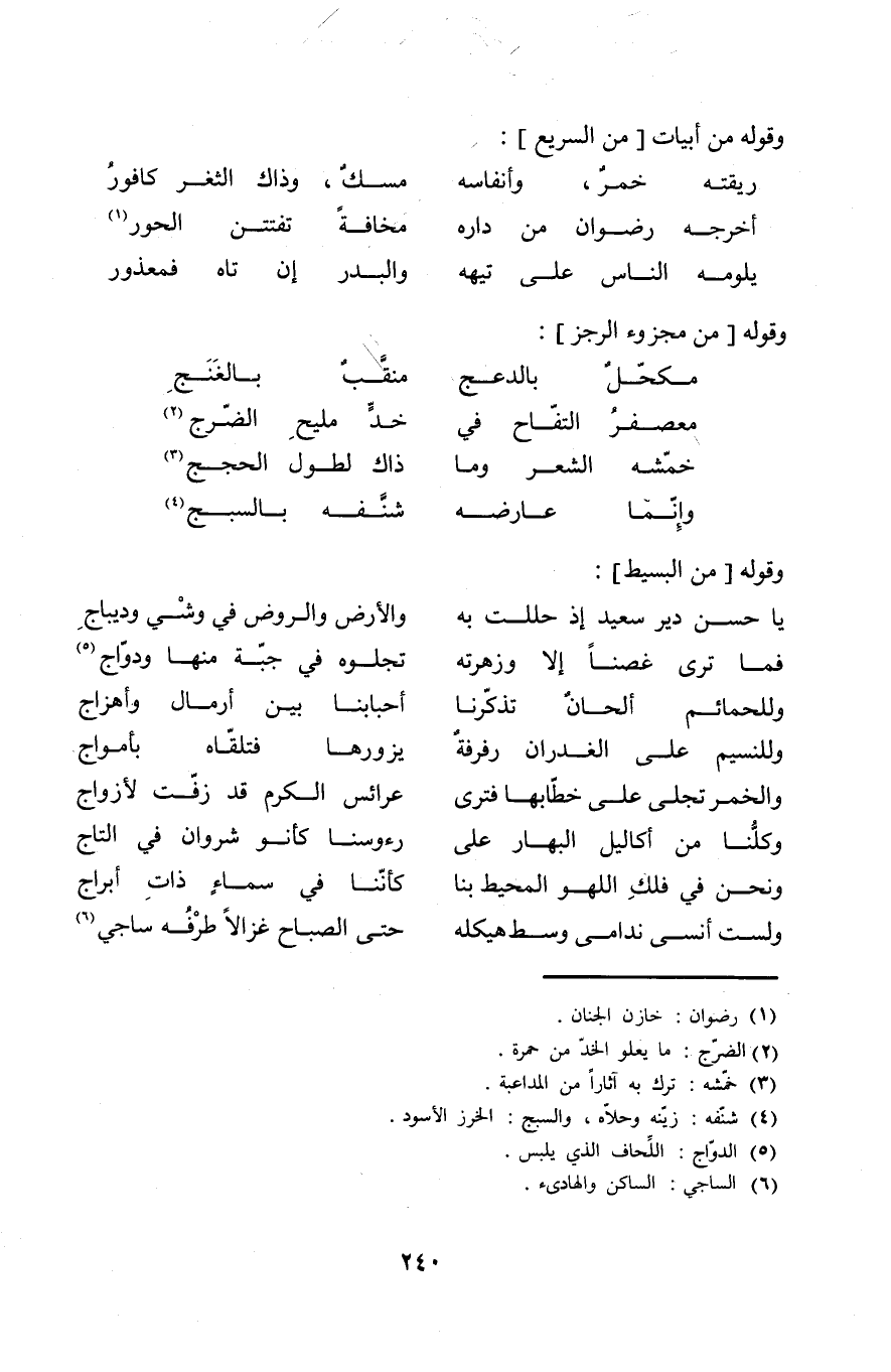 (يَا حسن دير سعيد إِذْ حللت بِهِ ... والارض وَالرَّوْض فِي وشي وديباج)