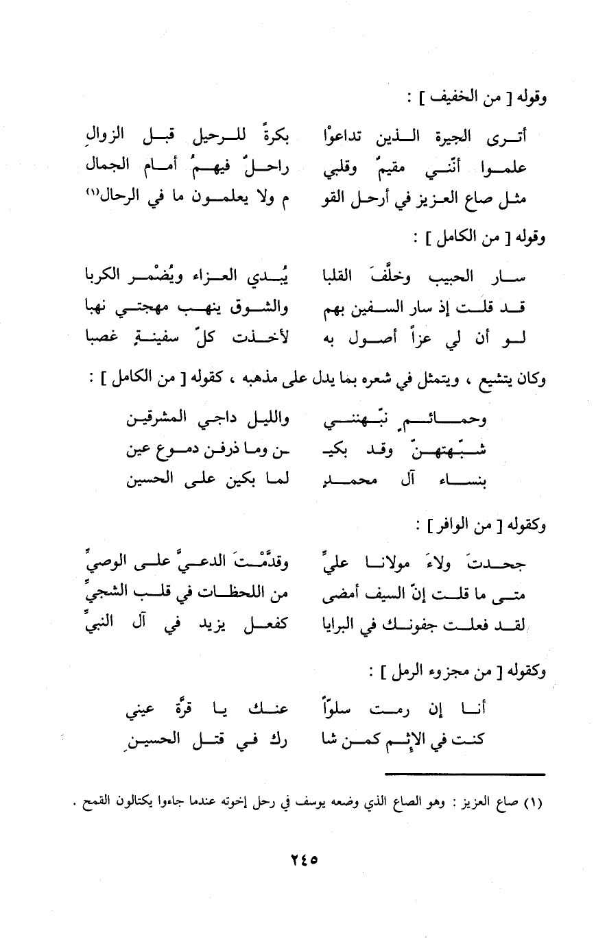 (لقد فعلت جفونك فِي البرايا ... كَفعل يزِيد فِي آل النَّبِي) // الوافر //