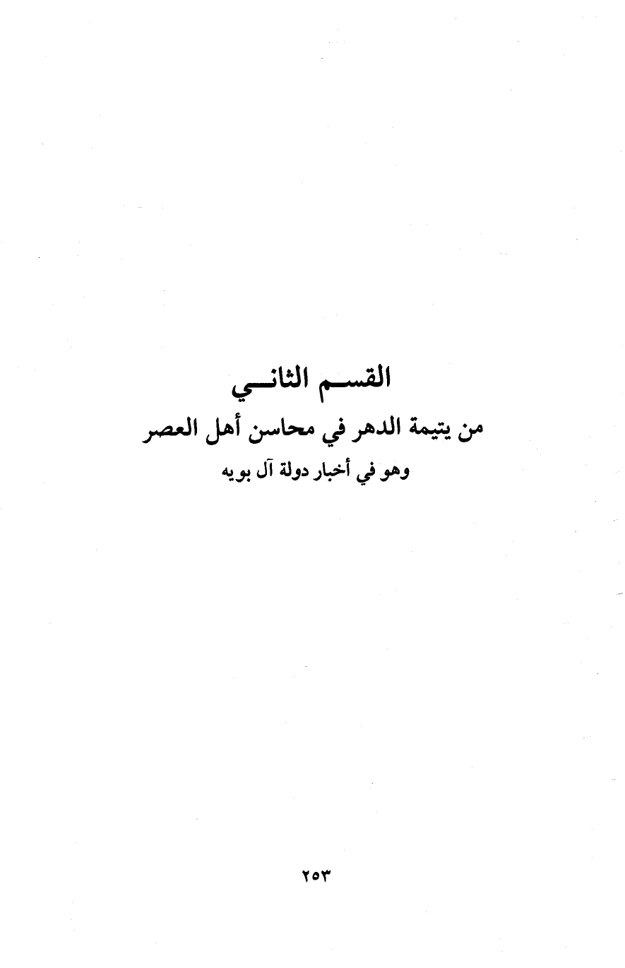 الْقسم الثَّانِي من يتيمة الدَّهْر فِي محَاسِن اهل الْعَصْر وَهُوَ فِي اخبار دولة آل بويه