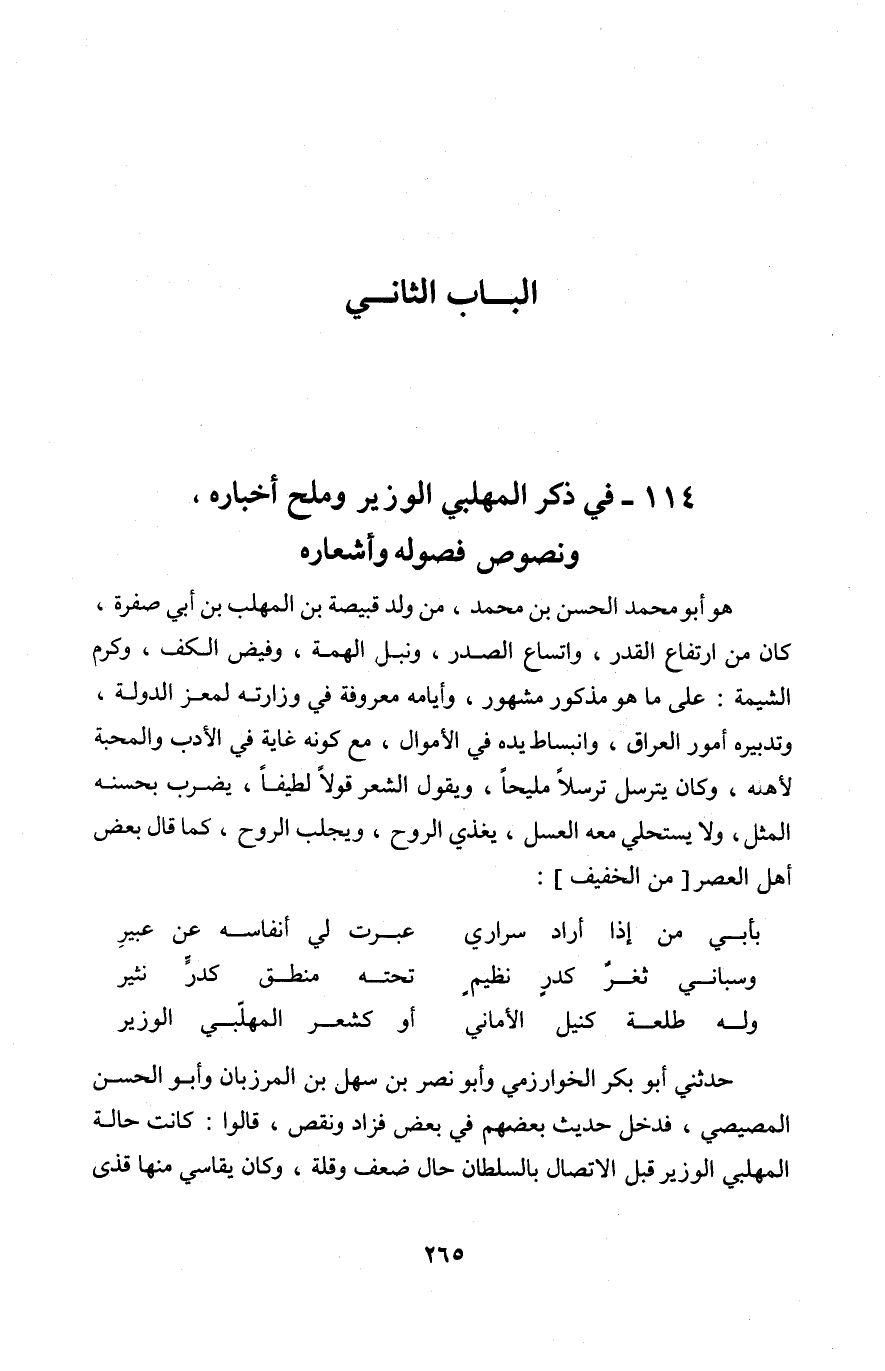 114 - فِي ذكر المهلبي الْوَزير وملح أخباره ونصوص فصوله وأشعاره