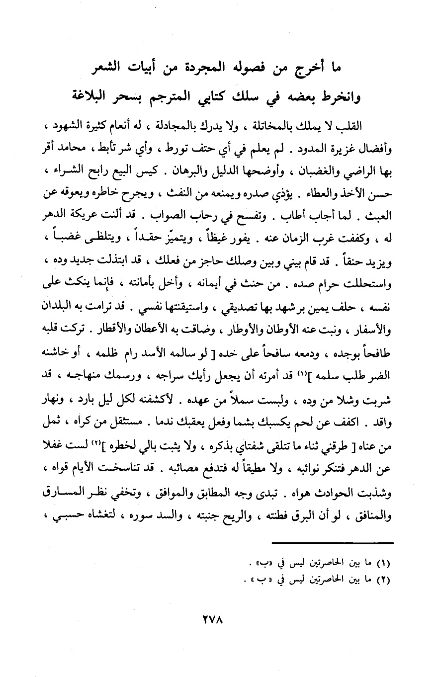 مَا اخْرُج من فصوله الْمُجَرَّدَة من ابيات الشّعْر وانخرط بعضه فِي سلك كتابي المترجم بِسحر البلاغة