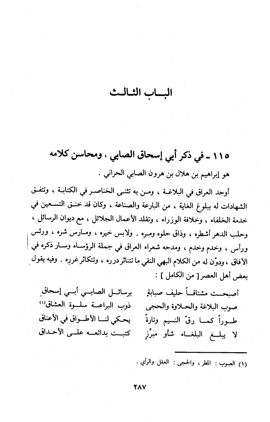 115 - فِي ذكر ابي اسحاق الصابي ومحاسن كَلَامه