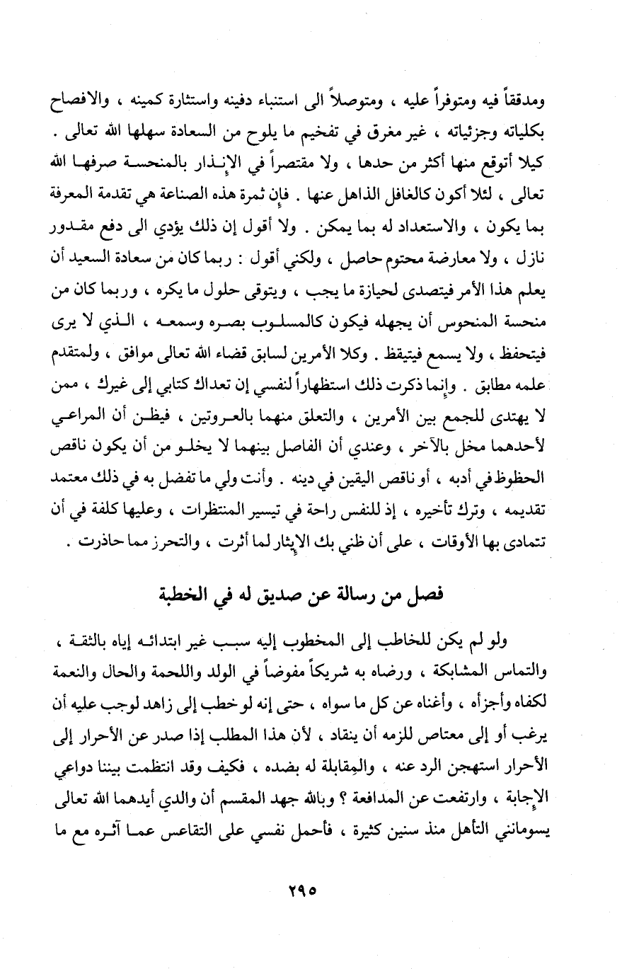 فصل من رِسَالَة عَن صديق فِي الْخطْبَة