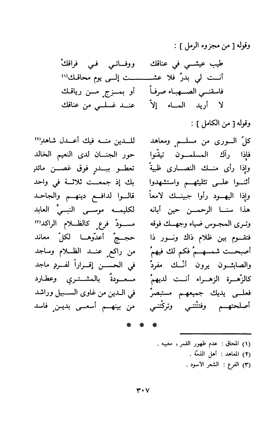 (وَإِذا رأى مِنْك النَّصَارَى ظَبْيَة ... تعطو ببدر فَوق غُصْن مائد)