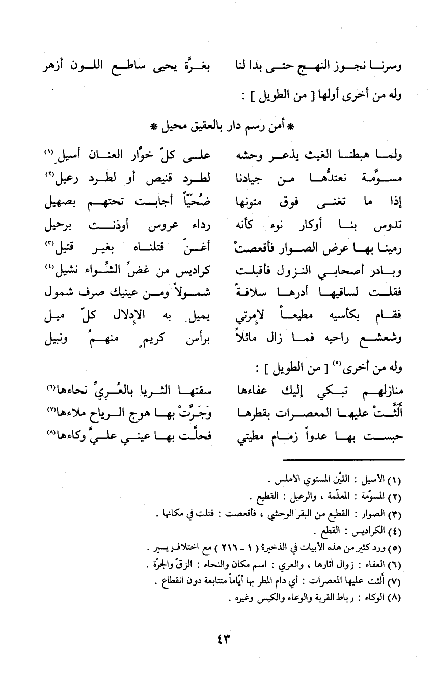 (رمينَا بهَا عرض الصوار فأقعصت ... أغن قَتَلْنَاهُ بِغَيْر قَتِيل)