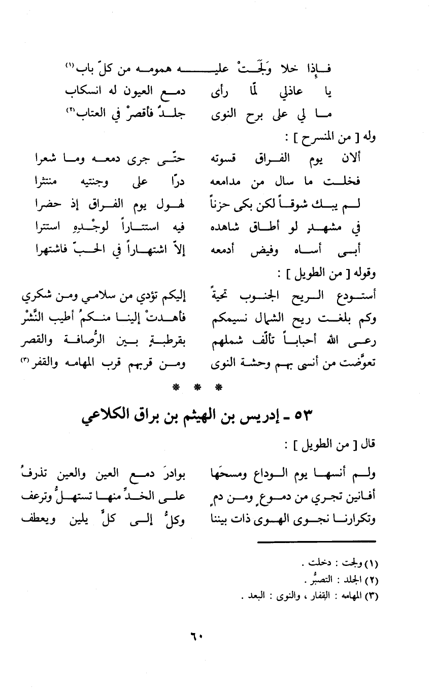 (تعوضت من انسى بهم وَحْشَة النَّوَى ... وَمن قربهم قرب المهامة والقفر) // الطَّوِيل //