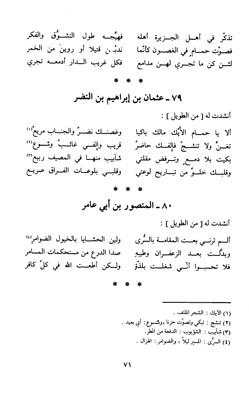 (بَكَيْت بِلَا دمع وترفض مقلتي ... شآبيب مِنْهَا فِي المصيف ربيع)