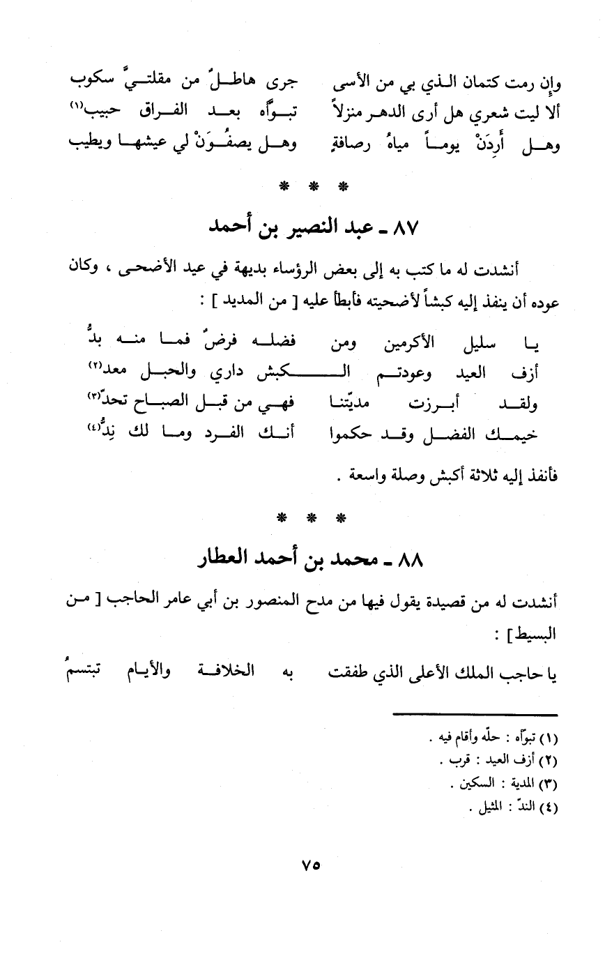 انشدت لَهُ من قصيدة يَقُول فِيهَا من مدح الْمَنْصُور بن ابي عَامر الْحَاجِب من الْبَسِيط