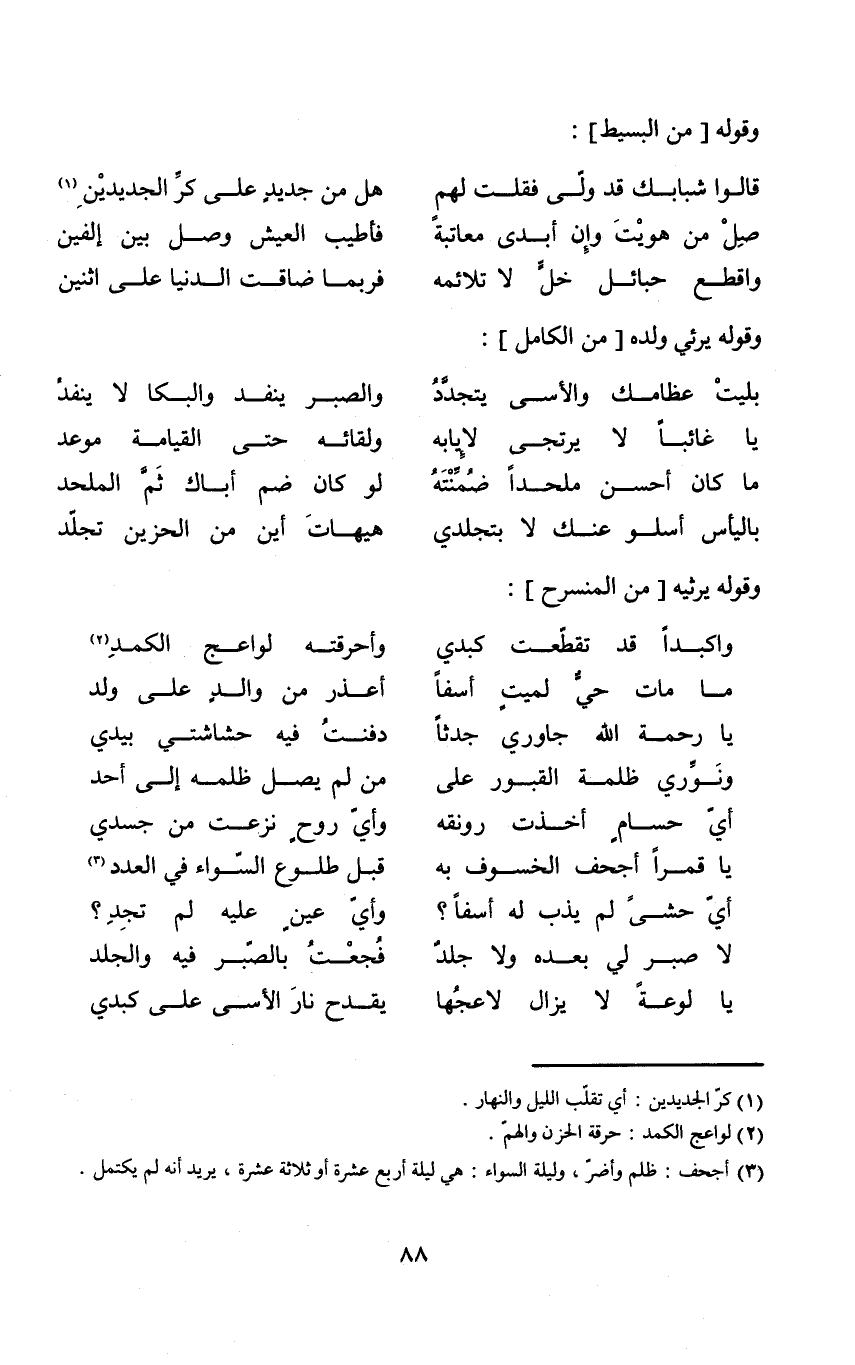 (بليت عظامك والاسى يَتَجَدَّد ... وَالصَّبْر ينْفد والبكا لَا ينْفد)