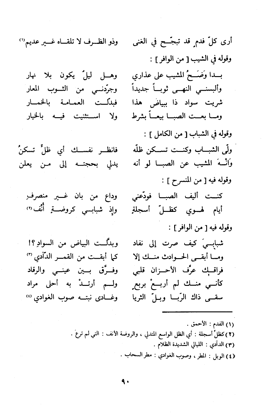 (شَبَابِي كَيفَ صرت إِلَى نفاد ... وبدلت الْبيَاض من السوَاد)