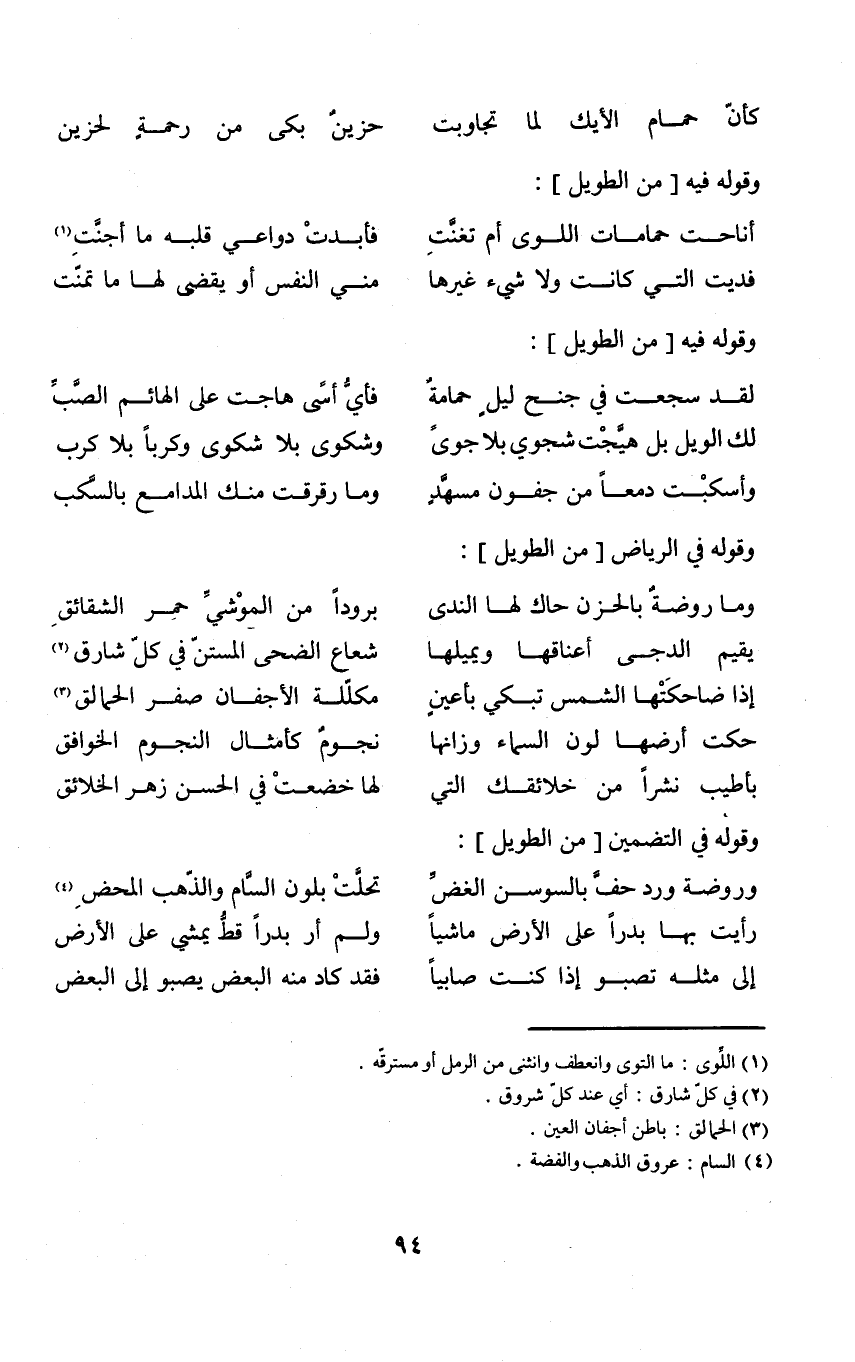 (كَأَن حمام الأيك لما تجاوبت ... حَزِين بَكَى من رَحْمَة لحزين) // الطَّوِيل //
