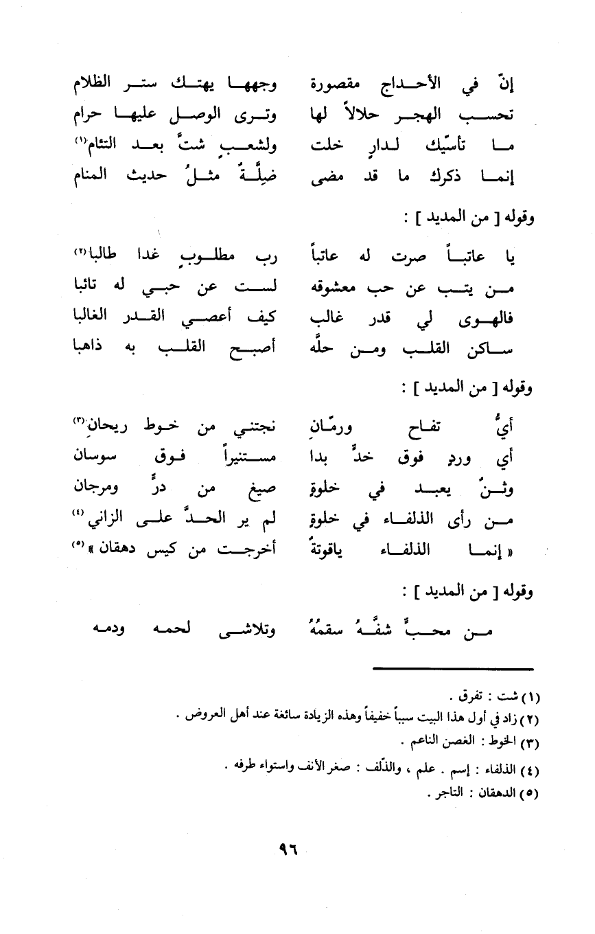 (تحسب الهجر حَلَالا لَهَا ... وَترى الْوَصْل عَلَيْهَا حرَام)