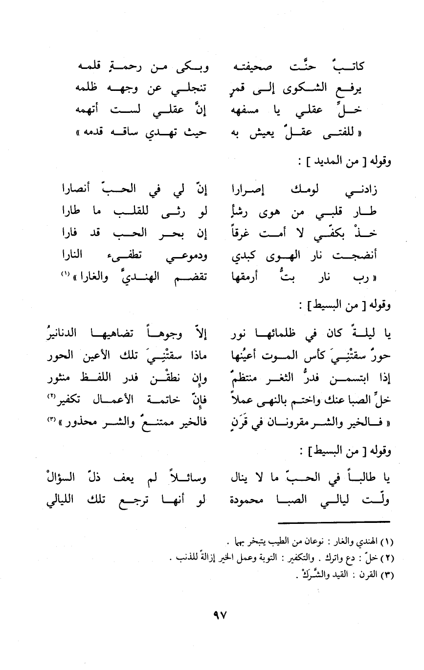 (زادني لومك إصرارا ... إِن لي فِي الْحبّ انصارا)
