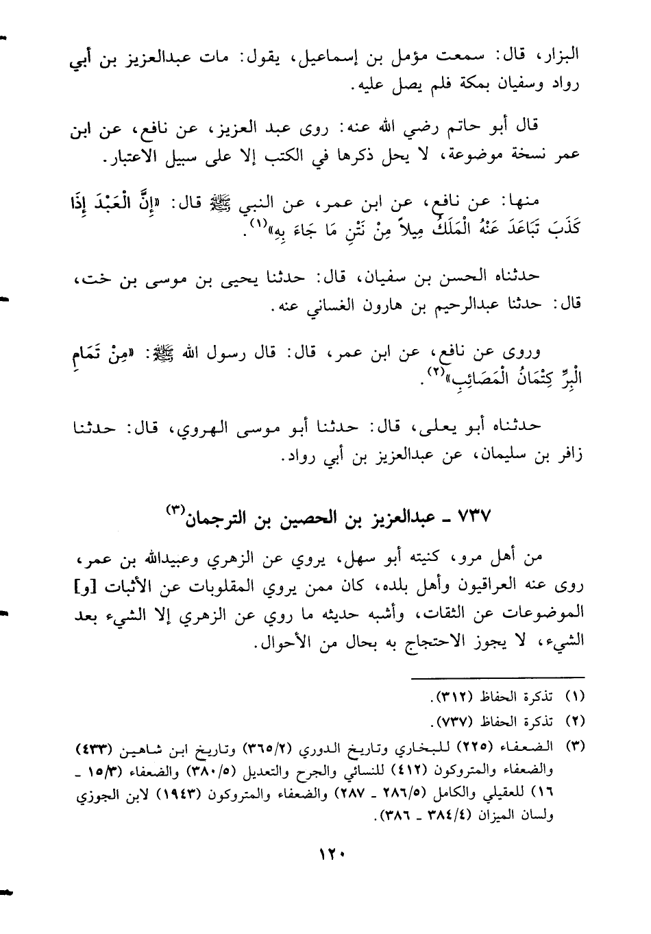 ٧٣٧ - عبد العزيز بن الحصين بن الترجمان (٣)