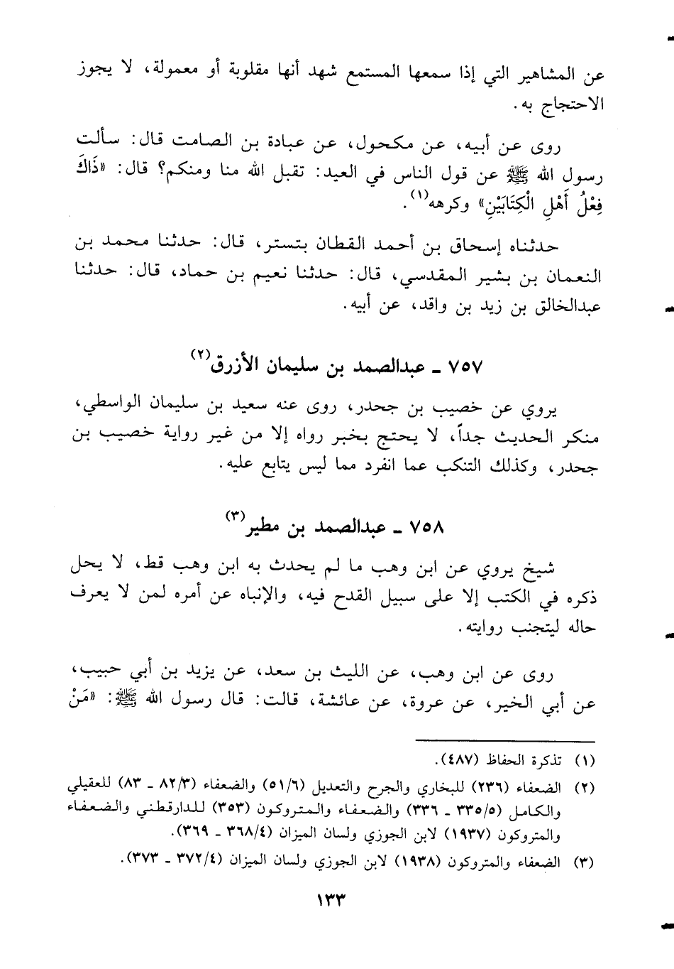 (٣) الضعفاء والمتروكون (١٩٣٨) لابن الجوزي ولسان الميزان (٤/ ٣٧٢ - ٣٧٣).