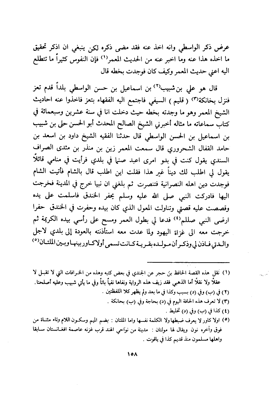 عرض ذكر الوَاسِطِيّ وانه اخذ عَنهُ فقد مضى ذكره لَكِن يَنْبَغِي ان اذكر تَحْقِيق مَا اخذه هَذَا عَنهُ وَمَا اخبر عَنهُ من الحَدِيث المعمر فَإِن النُّفُوس كثيرا مَا تتطلع اليه اعني حَدِيث المعمر وَكَيف كَانَ فَوجدت بِخَطِّهِ قَالَ