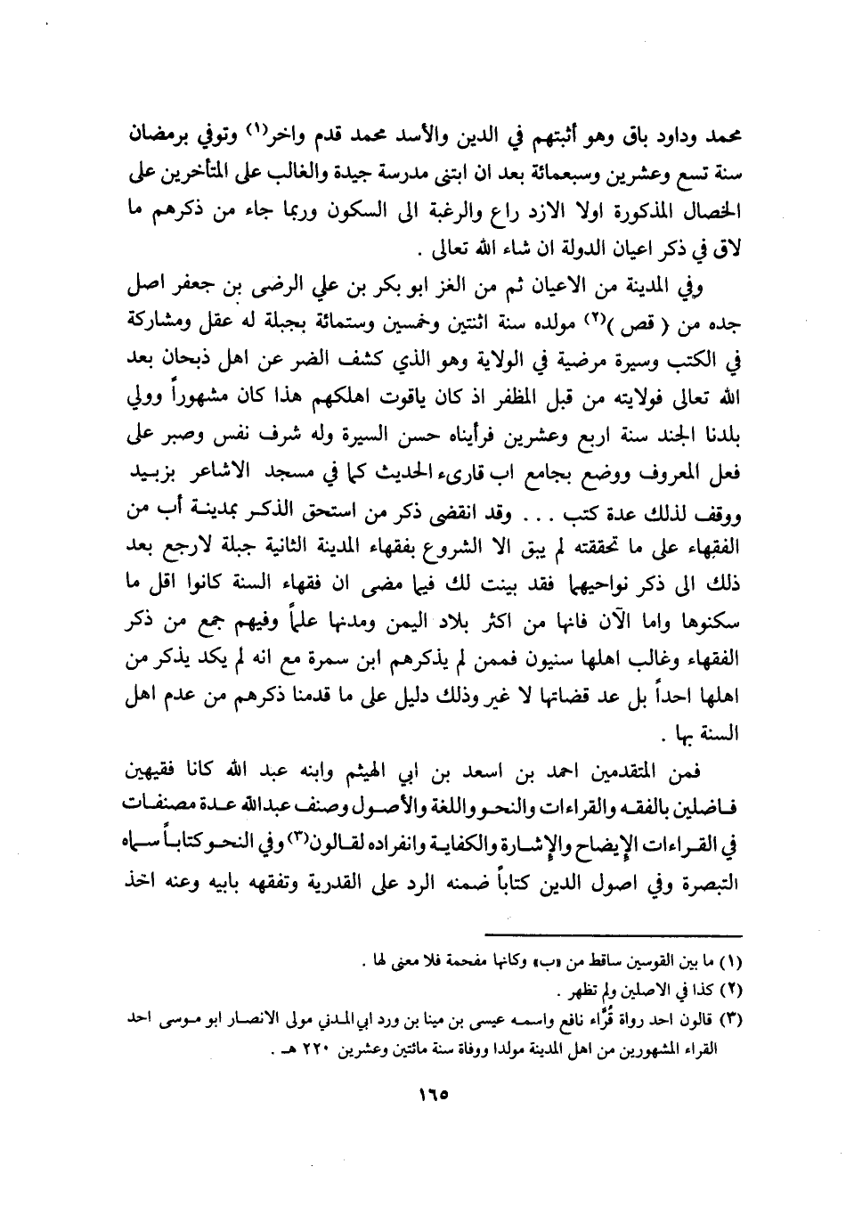 مُحَمَّد وَدَاوُد بَاقٍ وَهُوَ أثبتهم فِي الدّين والأسد مُحَمَّد قدم واخر وَتُوفِّي برمضان سنة تسع وَعشْرين وَسَبْعمائة بعد ان ابْنَتي مدرسة جَيِّدَة وَالْغَالِب على الْمُتَأَخِّرين على الْخِصَال الْمَذْكُورَة اولا الازد رَاع وَالرَّغْبَة الى السّكُون وَرُبمَا جَاءَ من ذكرهم مَا لَاق فِي ذكر اعيان الدولة إِن شَاءَ الله تَعَالَى
