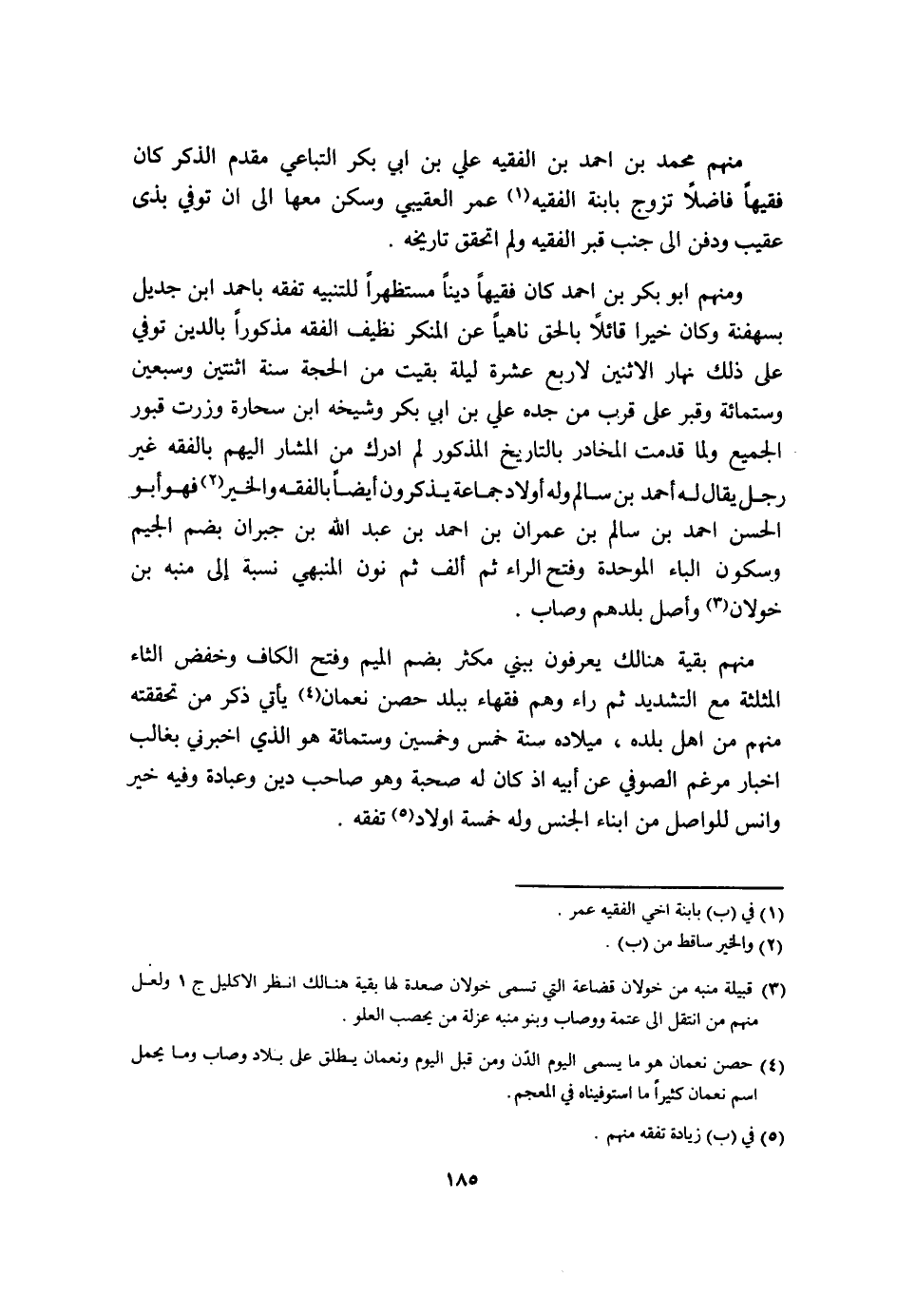 وَمِنْهُم ابو بكر بن احْمَد كَانَ فَقِيها دينا مستظهرا للتّنْبِيه تفقه باحمد ابْن جديل بسهفنة وَكَانَ خيرا قَائِلا بِالْحَقِّ ناهيا عَن الْمُنكر نظيف الْفِقْه مَذْكُورا بِالدّينِ توفّي على ذَلِك نَهَار الِاثْنَيْنِ لاربع عشرَة لَيْلَة بقيت من الْحجَّة سنة اثْنَتَيْنِ وسعبين وسِتمِائَة وقبرعلى قرب من حَده عَليّ بن ابي بكر وَشَيْخه ابْن سحارة وزرت قُبُور الْجَمِيع وَلما قدمت المخادر بالتاريخ الْمَذْكُور لم اِدَّرَكَ من الْمشَار اليهم بالفقه غير رجل يُقَال لَهُ أَحْمد بن سَالم وَله أَوْلَاد جمَاعَة يذكرُونَ أَيْضا بالفقه وَالْخَيْر فَهُوَ أَبُو الْحسن احْمَد بن سَالم بن عمرَان بن احْمَد بن عبد الله بن جبران بِضَم الْجِيم وَسُكُون الْبَاء الْمُوَحدَة وَفتح الرَّاء ثمَّ ألف ثمَّ نون المنبهي نِسْبَة الى مُنَبّه بن خولان وأصل بلدهم وصاب