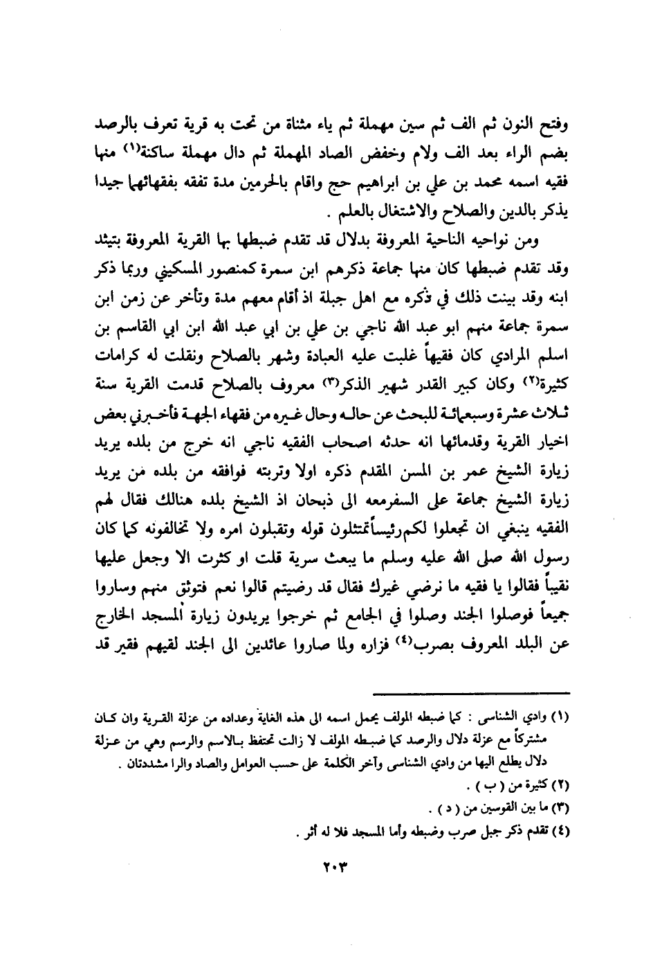 وَفتح النُّون ثمَّ الف ثمَّ سين مُهْملَة ثمَّ يَاء مثناة من تَحت بِهِ قَرْيَة تعرف بالرصد بِضَم الرَّاء بعد الف وَلَام وخفض الصَّاد الْمُهْملَة ثمَّ دَال مُهْملَة سَاكِنة مِنْهَا فَقِيه اسْمه مُحَمَّد بن عَليّ بن ابراهيم حج واقام بالحرمين مُدَّة تفقه بفقهائهما جيدا يذكر بِالدّينِ وَالصَّلَاح والاشتغال بِالْعلمِ