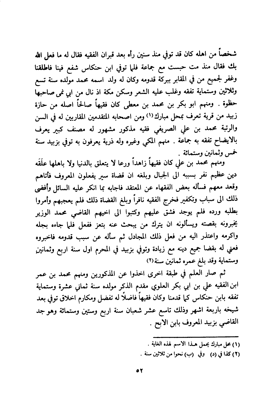 ثمَّ صَار الْعلم فِي طبقَة اخرى اخذوا عَن الْمَذْكُورين وَمِنْهُم مُحَمَّد بن عمر ابْن الْفَقِيه عَليّ بن ابي بكر الْعلوِي مقدم الذّكر مولده سنة ثَمَانِي عشرَة وستماية تفقه بِابْن حنكاس كَمَا قدمنَا وَكَانَ فَقِيها فَاضلا لَهُ تفضل وَمَكَارِم اخلاق توفّي بعد شَيْخه باربعة اشهر وَذَلِكَ تَاسِع عشر شعْبَان سنة ارْبَعْ وَسِتِّينَ وسِتمِائَة وَهُوَ جد القَاضِي بزبيد الْمَعْرُوف بِابْن الابح