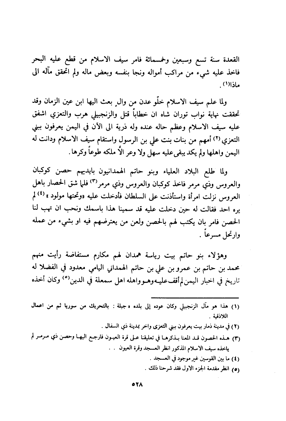 وَهَؤُلَاء بَنو حَاتِم بَيت رياسة هَمدَان لَهُم مَكَارِم مستفاضة رَأَيْت مِنْهُم مُحَمَّد بن حَاتِم بن عَمْرو بن عَليّ بن حَاتِم الْهَمدَانِي اليامي مَعْدُود فِي الفضلا لَهُ تَارِيخ فِي أَخْبَار الْيمن لم أَقف عَلَيْهِ وَهُوَ وَأَهله اهل سمعلة فِي الدّين وَكَانَ أَخذه